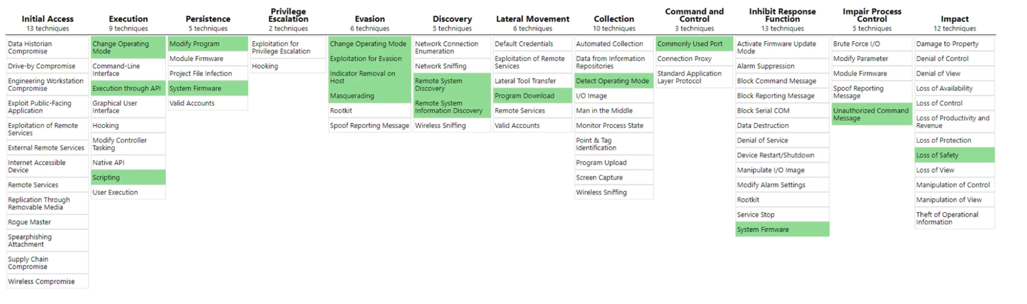 We are tracking different attacks using the MITRE ATT&CK ICS framework. This matrix is an effective tool security pros can use to identify, assess, and mitigate cyberattacks against industrial networks. For example, here are the relevant attack techniques and tactics used by the infamous Triton ICS malware.