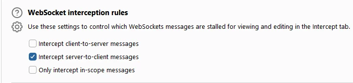 Enabling the interception of server-to-client messages in the burpsuite settings window.
