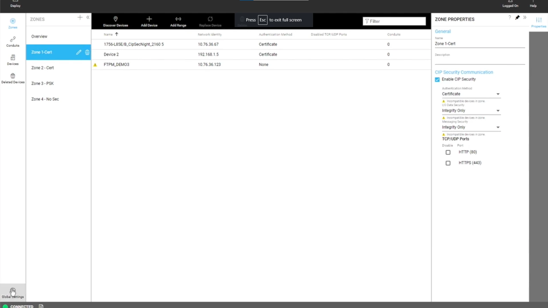 To deploy this specific solution in an OT environment, one would need to use Rockwell’s Factorytalk Policy Manager and configure the policy for the network. For example, PLC from Zone X will be able to communicate with an HMI and an EWS from Zone Y only. During the configuration, a set of certificates will be generated and sent to each party so they could communicate over a secured channel.