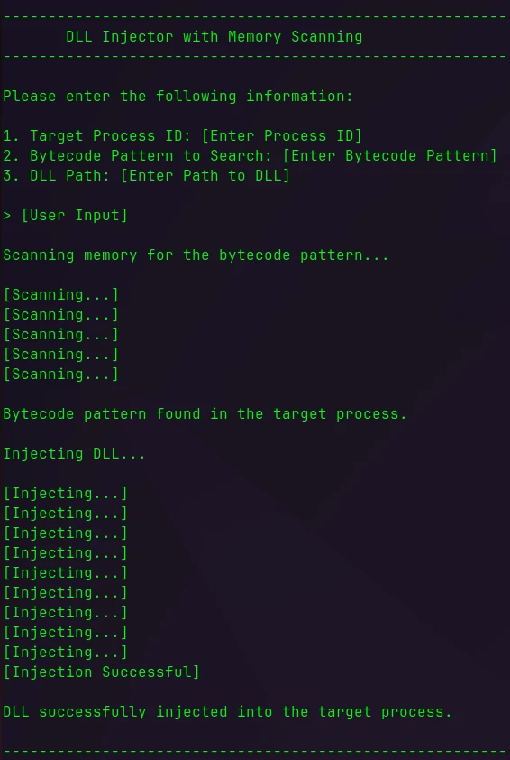 Illustration of DLL injection process in the CLI.